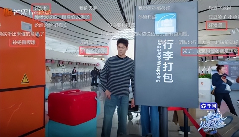 孙杨提出给行李打膜,张豆豆看其他人都不打膜也不想耽误时间,就提出不打了,但孙杨不乐意了。